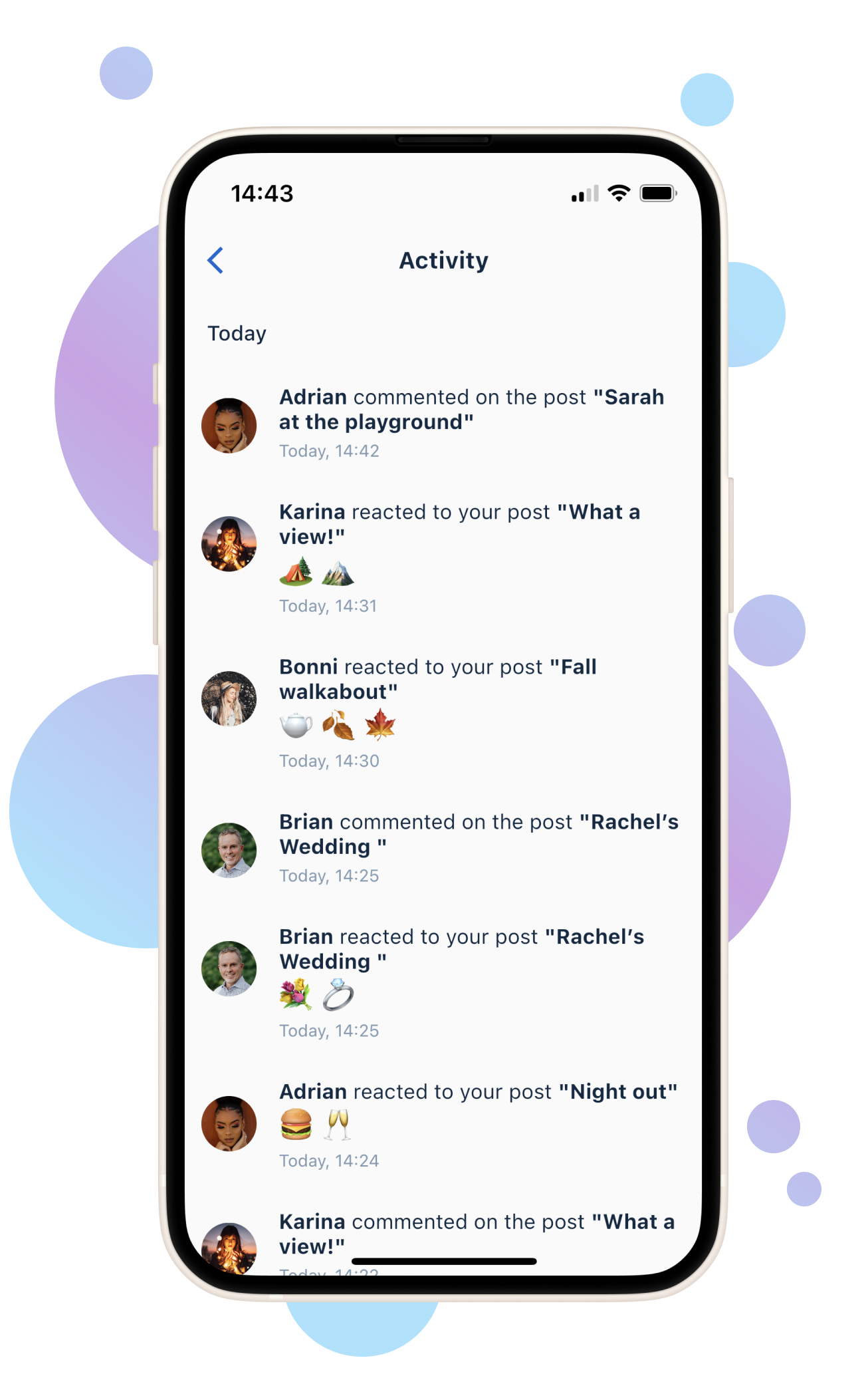 Comment and react to pictures, videos, and albums. Create a private space to keep in touch with your friends and family.